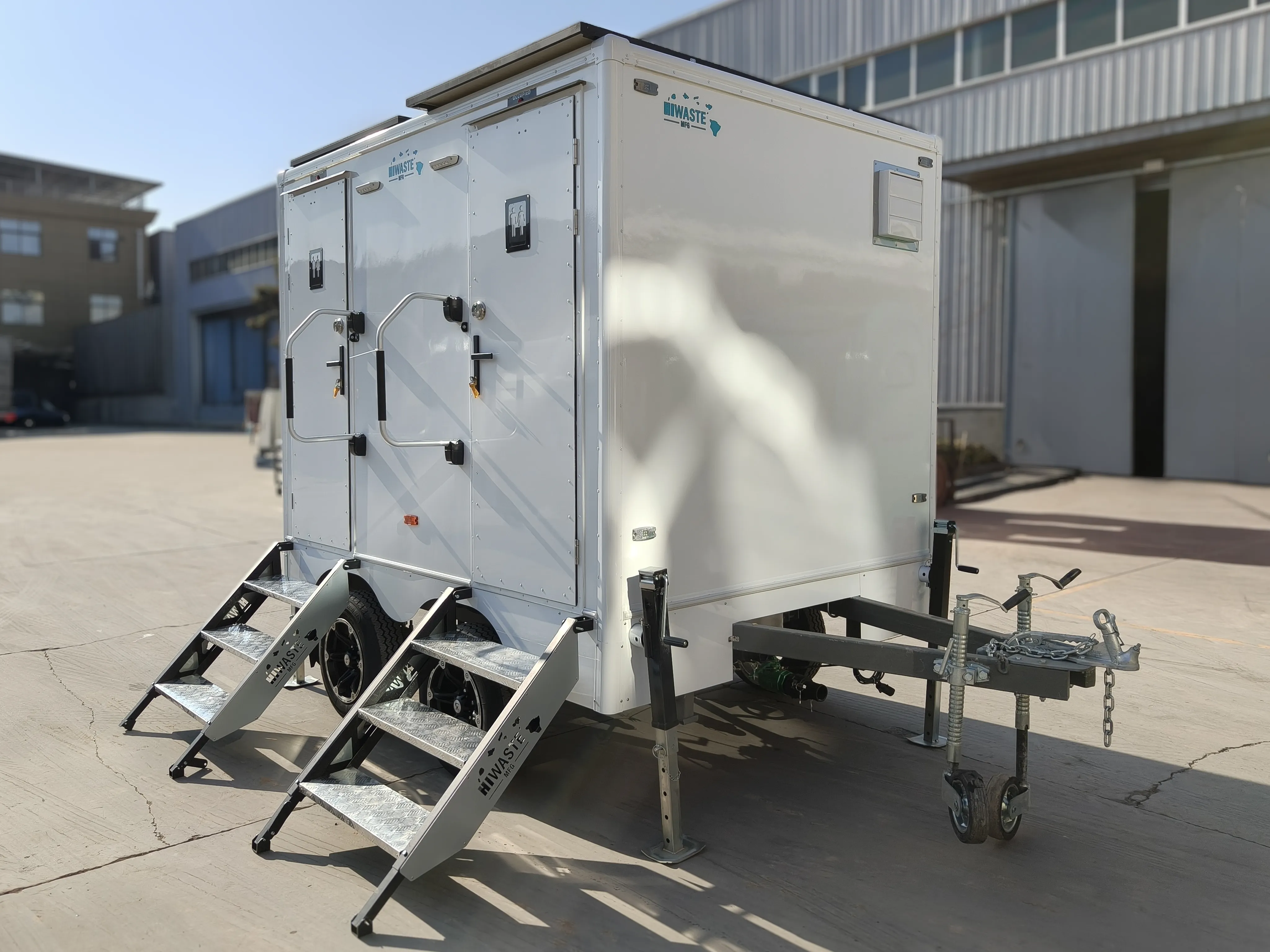 Our 2-stall trailer toilet is a heavy-duty mobile sanitation solution engineered for long-term performance on job sites, outdoor installations, and high-traffic deployments.