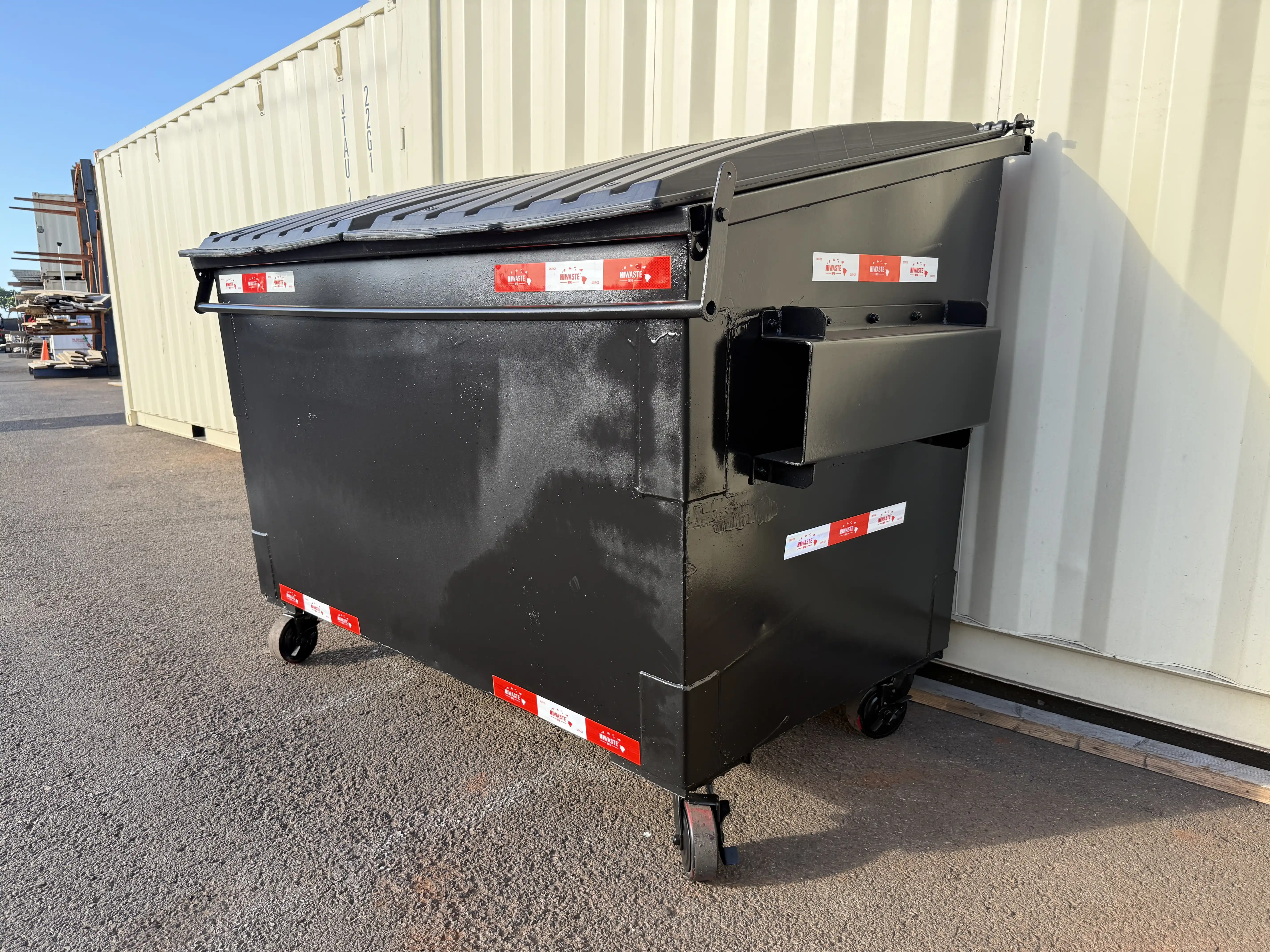 The dumpster is fully galvanized for maximum durability, providing long-term protection against corrosion in Hawaii’s coastal environment. While galvanization eliminates the need for paint, the unit can be painted in any color upon request to match branding or site requirements.